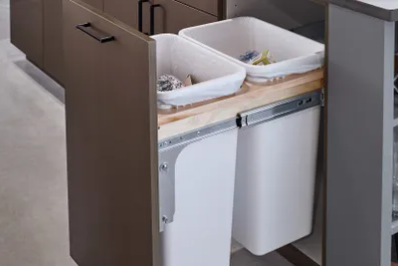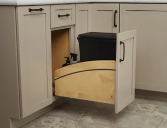 Stash your trash in luxurious style with the 4WCCC Series Craftsman Collection Bottom Mount Waste Container from Rev-A-Shelf®! This one-of-a-kind pullout waste container features the same solid wood construction, recessed wire matte black accents, and a stunning new design with furniture-grade soft edges that is cohesive throughout our entire Craftsman Collection. Enjoy soft-close slides and integrated door-mount brackets.